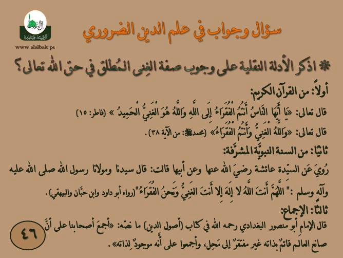 اذكر الأدلة النقلية على وجوب صفة الغِنى الـمُطلق في حق الله تعالى؟