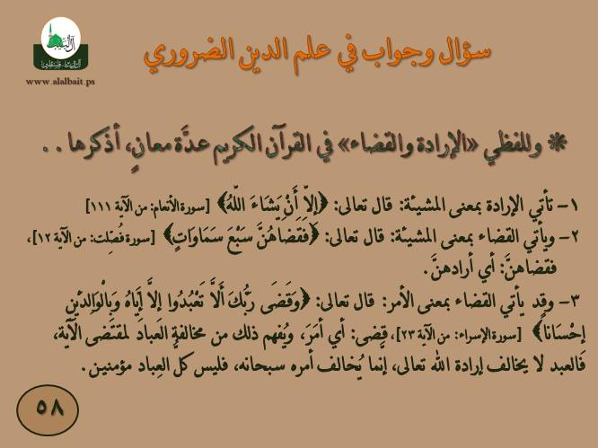 وللفظي «الإرادة والقضاء» في القرآن الكريم عدَّة معانٍ، أذكرها..